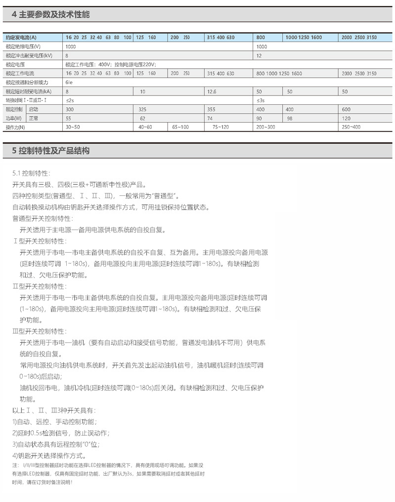 WQ5自动转换开关,TSE型式PC级;适用于交流50Hz、交流额定电压380V、额定电流至3150A、三相四线制供电系统。