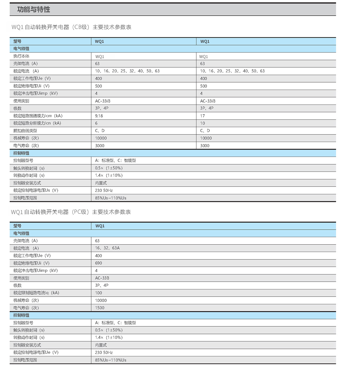 WQ1系列自动转换开关电器适用于交流50Hz,额定电压400V/415V及以下,额定电流至63A三相四线双路供电电网中,自动将一个或几个负载电路从一个电源接至另一个电源,以保证负载电路的正常供电。